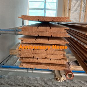 大工さんに用事があってご訪問 並べられてた木材(羽目板と言う)をみて