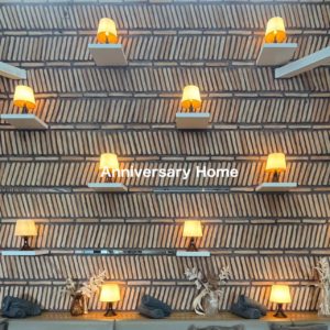棚が埋め込んであり、ランプが飾りつけされています。