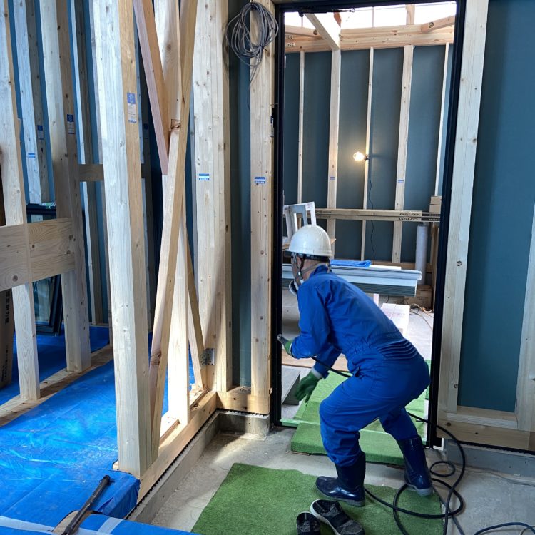 床下にも潜って、防蟻処理をしていただきます。