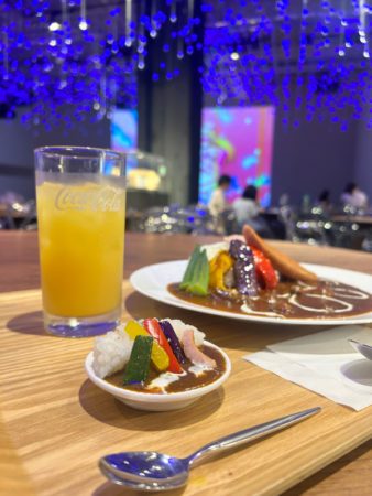 2階にフードコートみたいなのもあって、そこで「食べれるミニチュアカレー付きカレーライス」という文字を発見!!