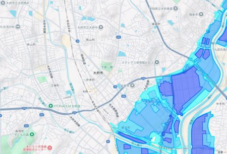 洪水で河川が氾濫した場合、浸水想定区域と推進を確認