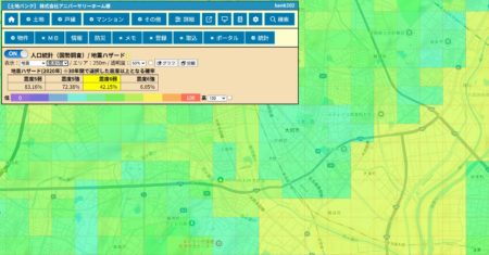 津波浸水範囲、土砂災害危険個所、活断層、地震発生確率を同時に確認しながらご案内できます