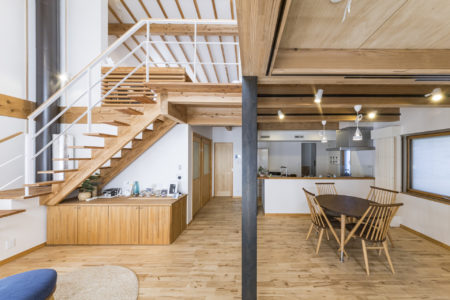 勾配天井と吹抜けで解放感抜群なのに暖かい
