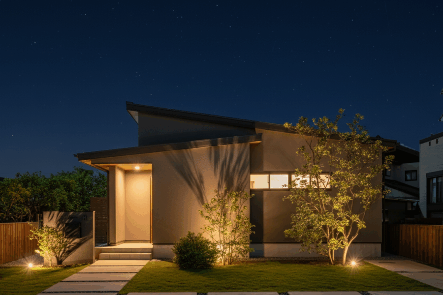 耐震性の高いSE構法を生かした「知多モデルハウス」を見学し、開放感あふれる住空間や家事ラク動線に惹かれたというK様。『アニバーサリーホーム』と一緒に土地を探し、憧れのアイランドキッチンや造作洗面台など、こだわりを詰め込んだ平屋を叶えられました。玄関は2WAY仕様で、リビングダイニングのほか、シューズクローゼットからそのままキッチンへ行き来できるルートも備えています。中庭で空間をつなぎ、LDK、洗面室兼ランドリールーム、ファミリークローゼットを回遊しながら暮らせるようにしたのもポイント。勾配天井のリビングと中庭が一体になっているため、開放感もたっぷりだ。「ソファでくつろいでいる時はもちろん、料理中やダイニングで食事をしている時も、中庭の大開口から空が見えて癒やされます」とK様夫妻のお言葉。基本性能が高く、ライフスタイルが変化しても快適な平屋になりました。